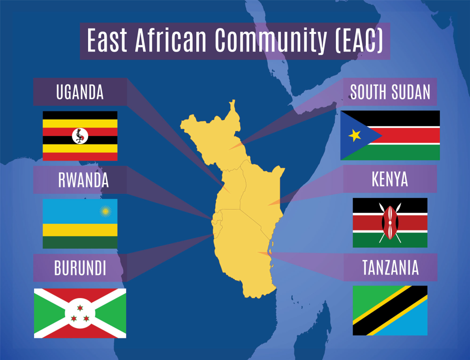 Uyu muryango uhuza ibihugu umunani ari byo uRwanda, uBurundi, Uganda, Kenya, Tanzania, Sudani y’Epfo, Repubulika Iharanira Demokarasi ya Congo (RDC), na Somalia iherutse kwemererwa kwinjira, igikomeje urugendo rwo kwinjizwa mu muryango burundu. Intego nyamukuru ya EAC ni ugushyiraho isoko rusange, umuryango w’ubukungu ukoresha ifaranga rimwe, ndetse no kugera ku bufatanye bwa politiki buhamye hagati y’ibihugu biwugize.
