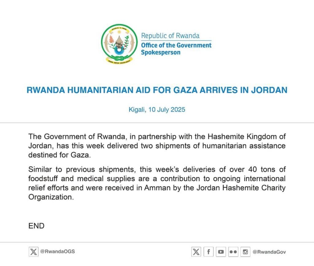 Iki gikorwa cyongera kugaragaza uruhare rw’u Rwanda mu bikorwa by’ubumuntu bigamije kurengera ubuzima, by’umwihariko mu gihe cy’ibibazo biremereye byugarije abaturage b’akarere ka Gaza.